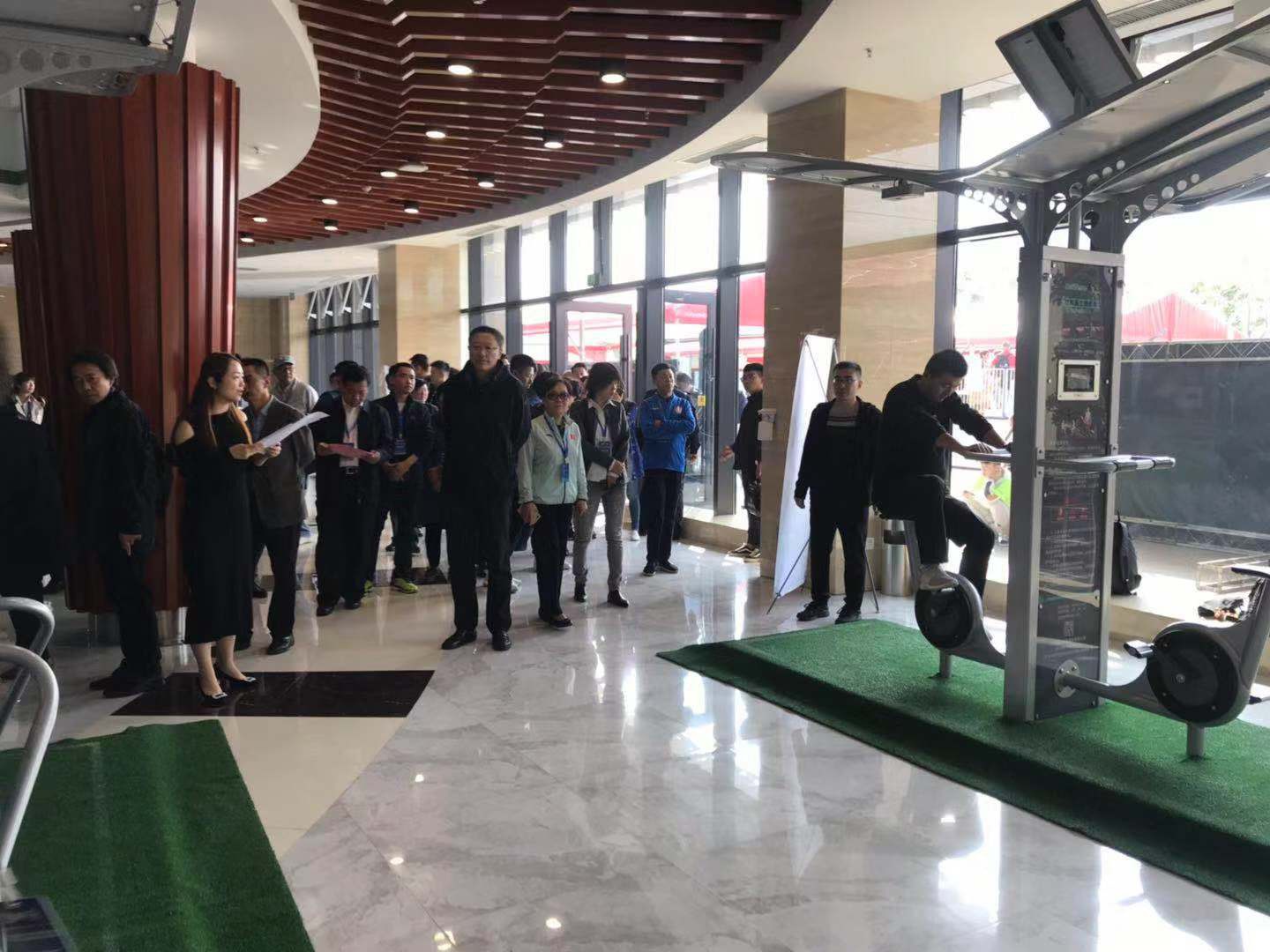 2019中国(德州)体育产业交流大会共分为四大板块,分别为中国体育用品业联合会(德州)体育产业论坛、重点企业参观调研、赛事、创新型体育产品展览。世界杯下单平台二代智能路径、爱动超级体测机、碳纤维自行车、碳纤维体操器材、负离子草坪等产品成为创新型体育产品成果展览上的焦点。