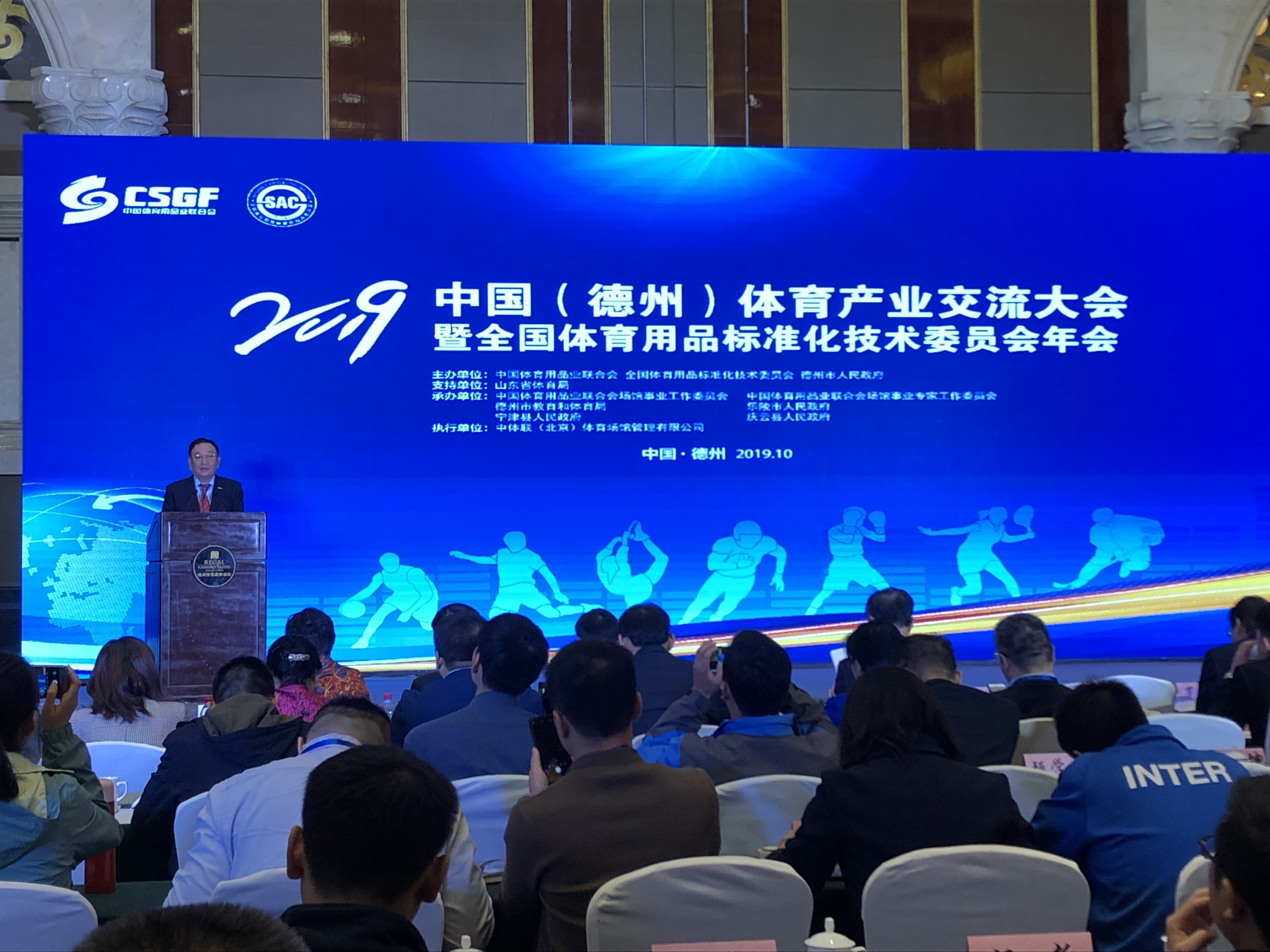 10月13日,2019中国(德州)体育产业交流大会在太阳能德州小镇开幕。大会由中国体育用品业联合会与德州市人民政府联合主办,山东省体育局支持,中国体育用品业联合会场馆事业工作委员会等单位共同承办。大会在 “融入京津冀助力新动能”的大背景下,以“德州智造·标准引领,助力体育产业升级”为主题,旨在充分展示区域体育产业发展成果,促进国际国内体育产业交流,扩大招商引资规模,搭建品牌商、渠道商和消费者展示与互动平台。开幕式上,世界杯下单平台产业集团荣获“明星企业”称号。