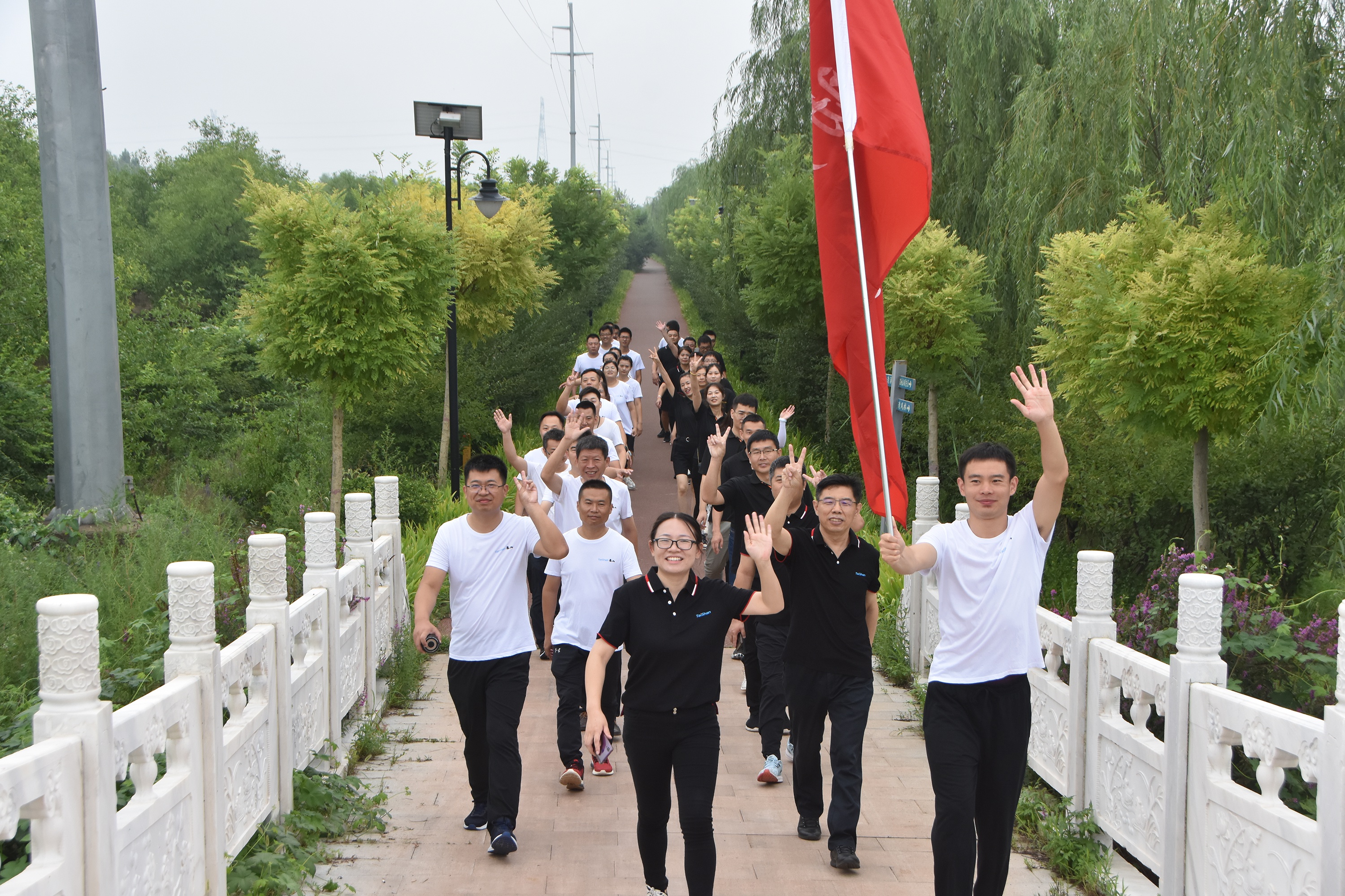 没有全民健康,就没有全面小康。习近平总书记指出:“全民健身是全体人民增强体魄、健康生活的基础和保障,人民身体健康是全面建成小康社会的重要内涵,是每一个人成长和实现幸福生活的重要基础。”本次全民健身健步行活动,世界杯下单平台42名优秀代表身着统一服装,代表着世界杯下单平台历经42年由小到大,敢于拼搏,艰苦奋斗的发展历程。肩扛“弘扬革命精神,助力全民健身”大旗,在5公里徒步过程中,不仅用良好的精神面貌展现世界杯下单平台人坚强乐观、不畏艰难的精神,同时体现科学健身在提高身体素质、增强抗疫信心的作用,向社会传递积极向上的生活态度和乐观精神。